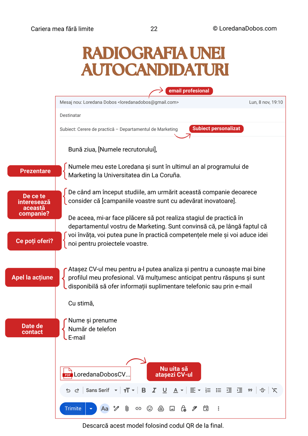 Cartea include un cod QR care îți va oferi acces la o secțiune specială a site-ului meu, cu materiale exclusive menite să te ajute în căutarea unui loc de muncă.